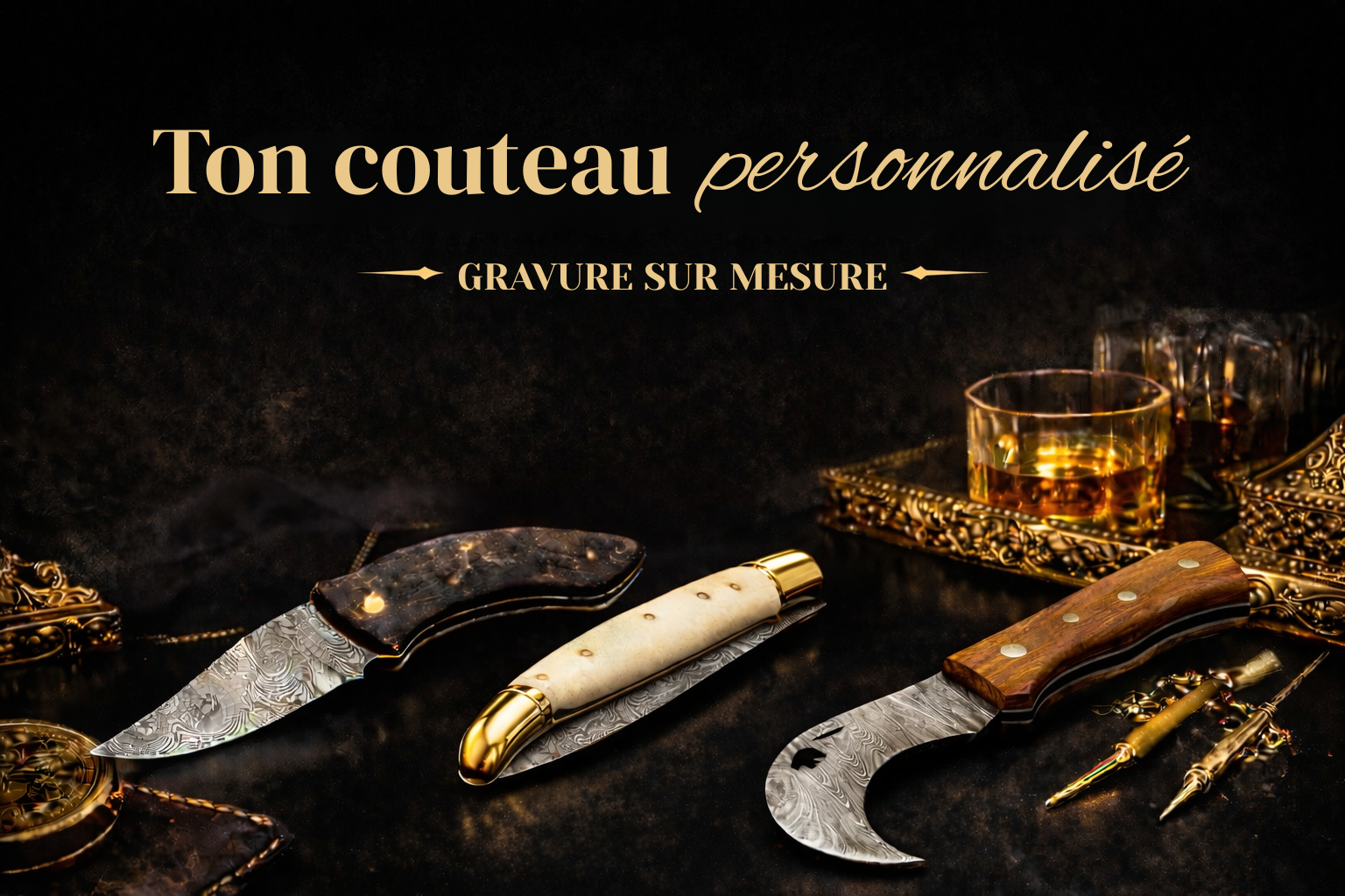 Offrez une pièce unique en acier damas ou inox, gravée sur mesure.