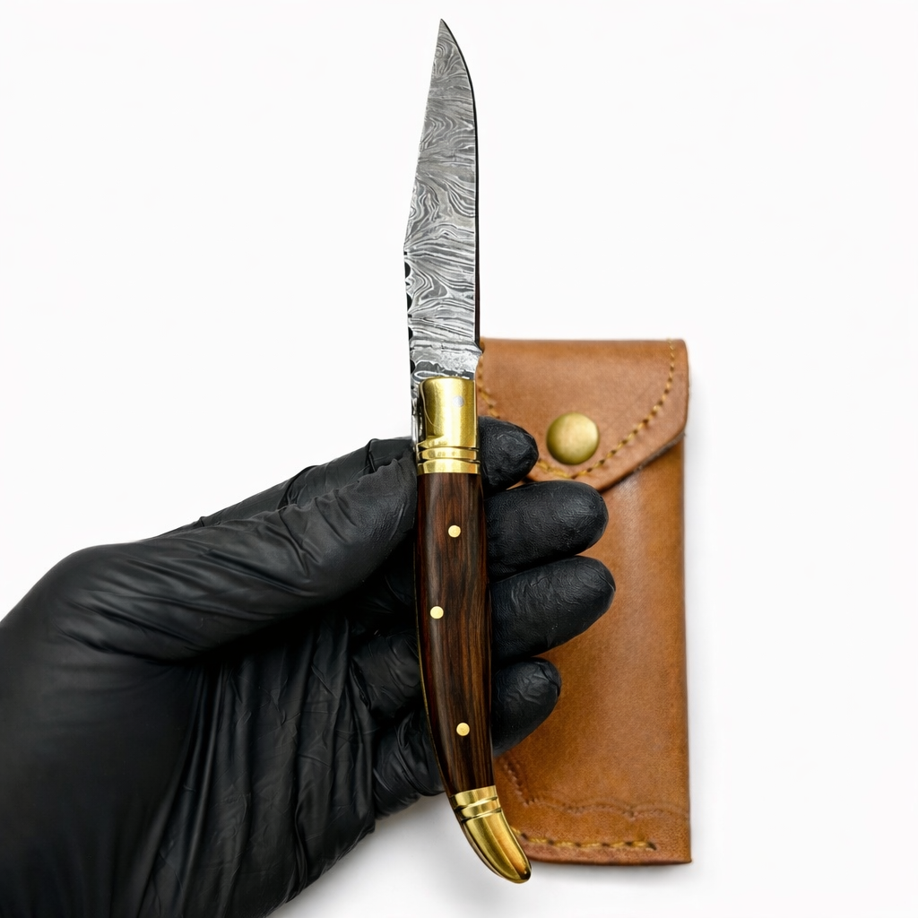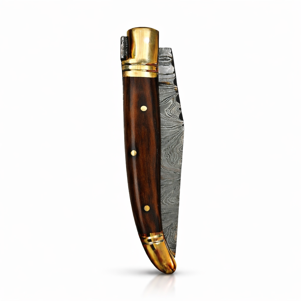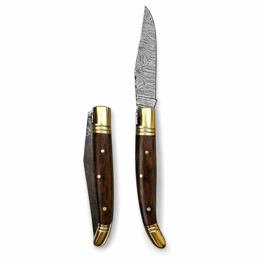 Ce couteau pliant est fabriqué avec une lame en acier damassé haut de gamme, composée de 250 couches, offrant :
