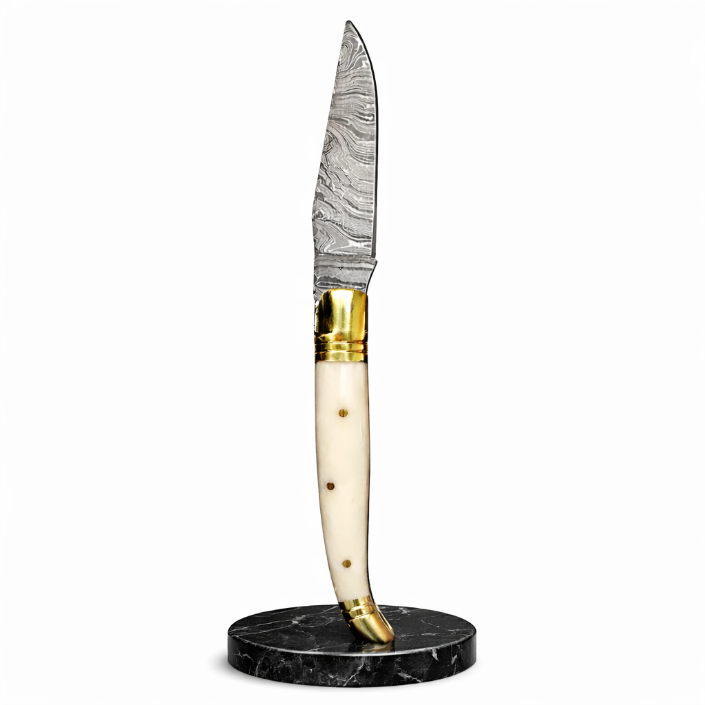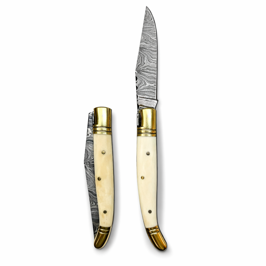 Le manche est disponible en os naturel ou en bois, apportant une prise en main confortable et un style authentique.