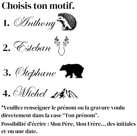Chaque motif est imaginé dans notre atelier, par notre Designer attitré. Vous ne les trouverez donc que chez nous, pour un cadeau encore plus unique !