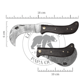 Découvrez une pièce artisanale exceptionnelle avec cette serpette en acier damassé personnalisable, idéale pour les amateurs de couteaux traditionnels et d’outils élégants. Sa forme courbée emblématique, associée à une lame prestigieuse en acier damassé 250 couches, en fait un objet aussi pratique que raffiné.
