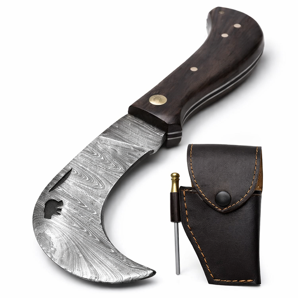 Cette serpette est dotée d’une lame forgée en acier damassé haut de gamme, composée de 250 couches, offrant :