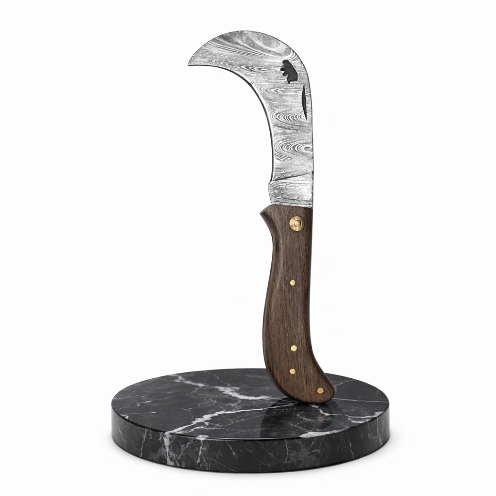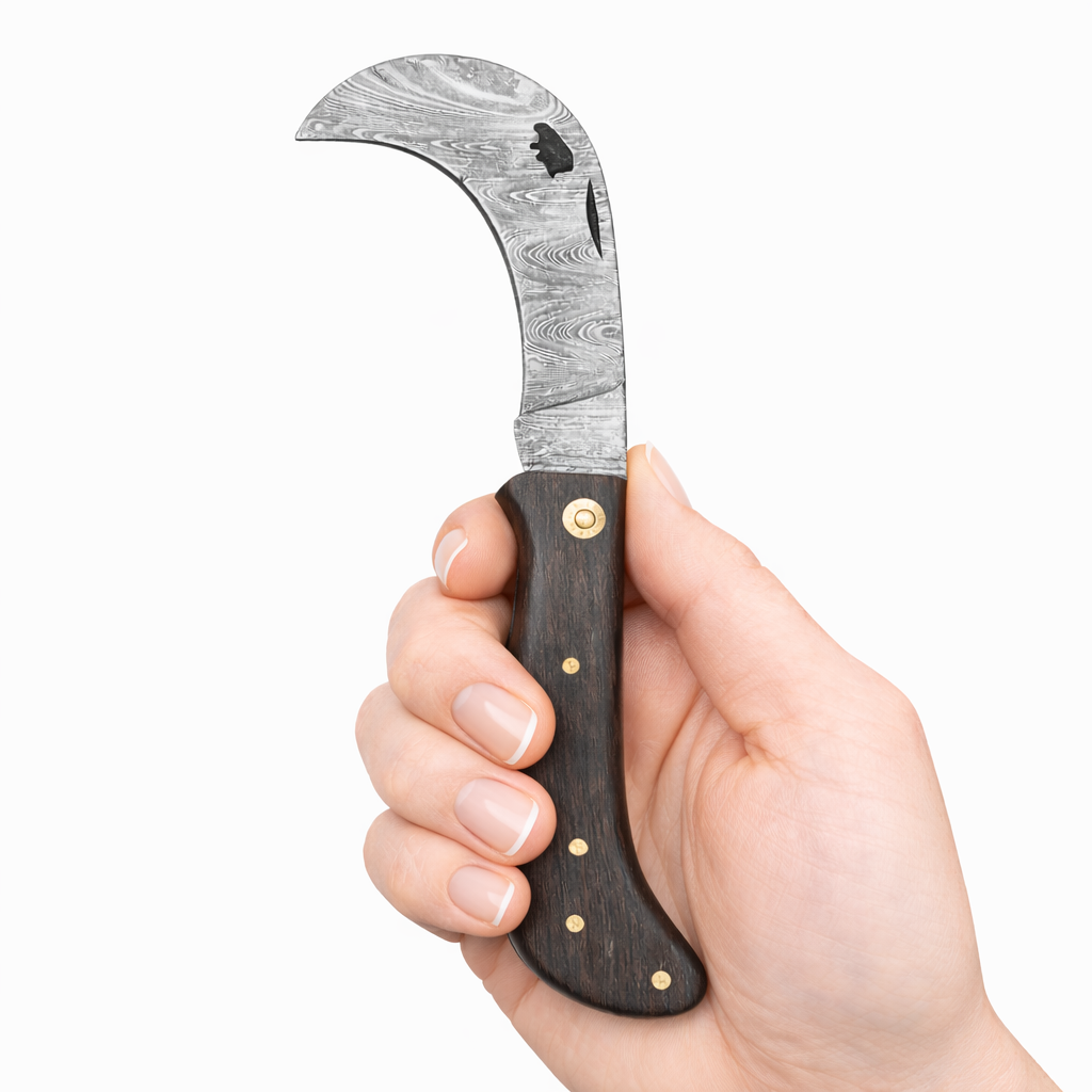 Une serpette en acier damassé 250 couches : robustesse et élégance