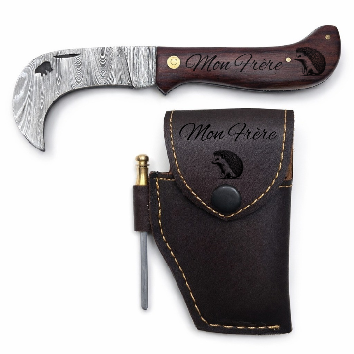 Parfaite comme cadeau pour homme, cette serpette peut être entièrement personnalisée : manche gravé, étui en cuir personnalisé… un cadeau unique et intemporel.