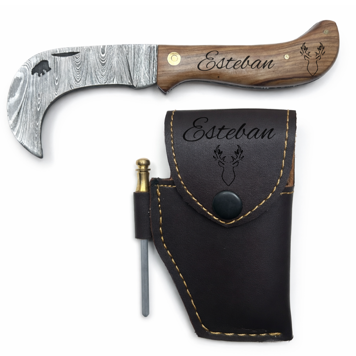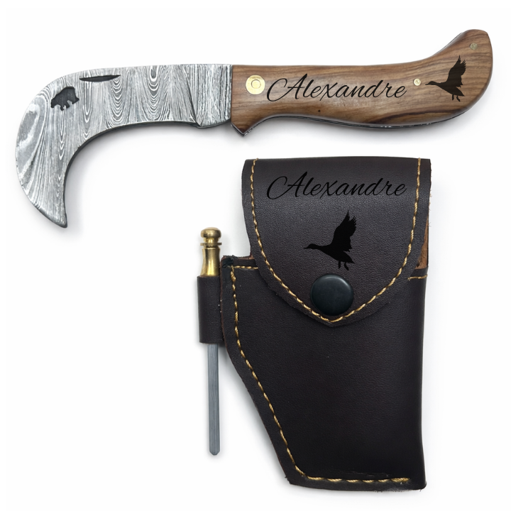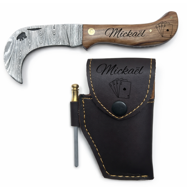 Serpette Gravure Personnalisée - Damas - Noyer.