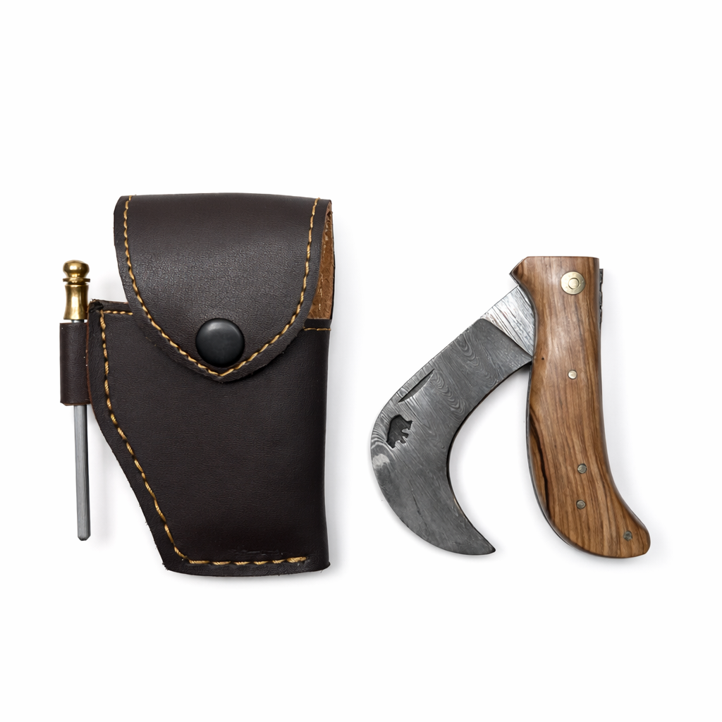 La serpette est livrée avec un superbe étui en cuir véritable, assurant protection et style.
